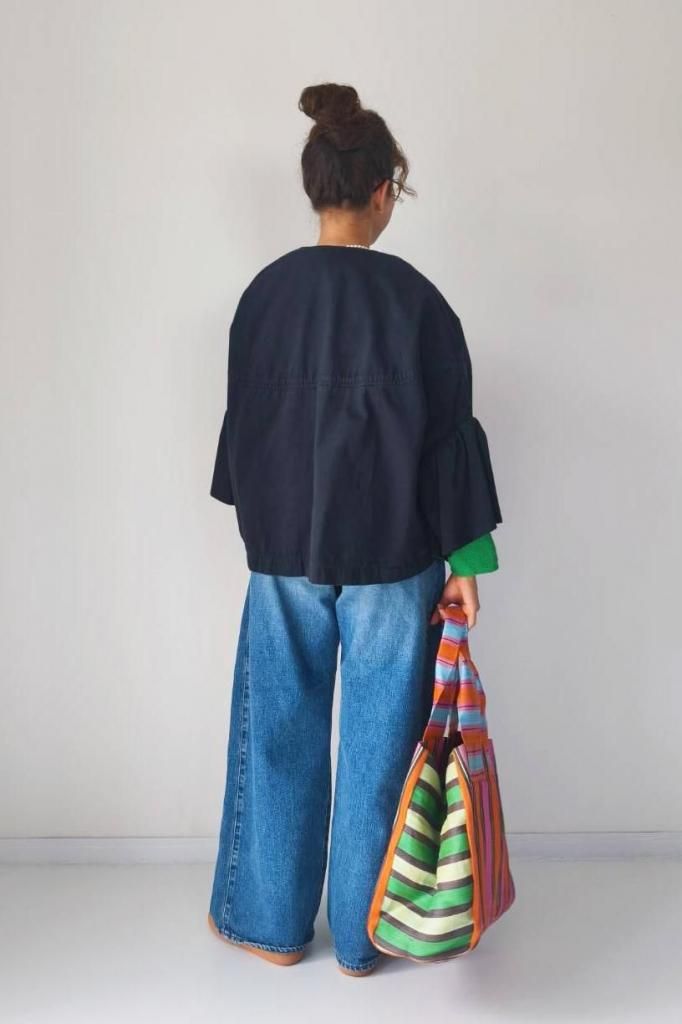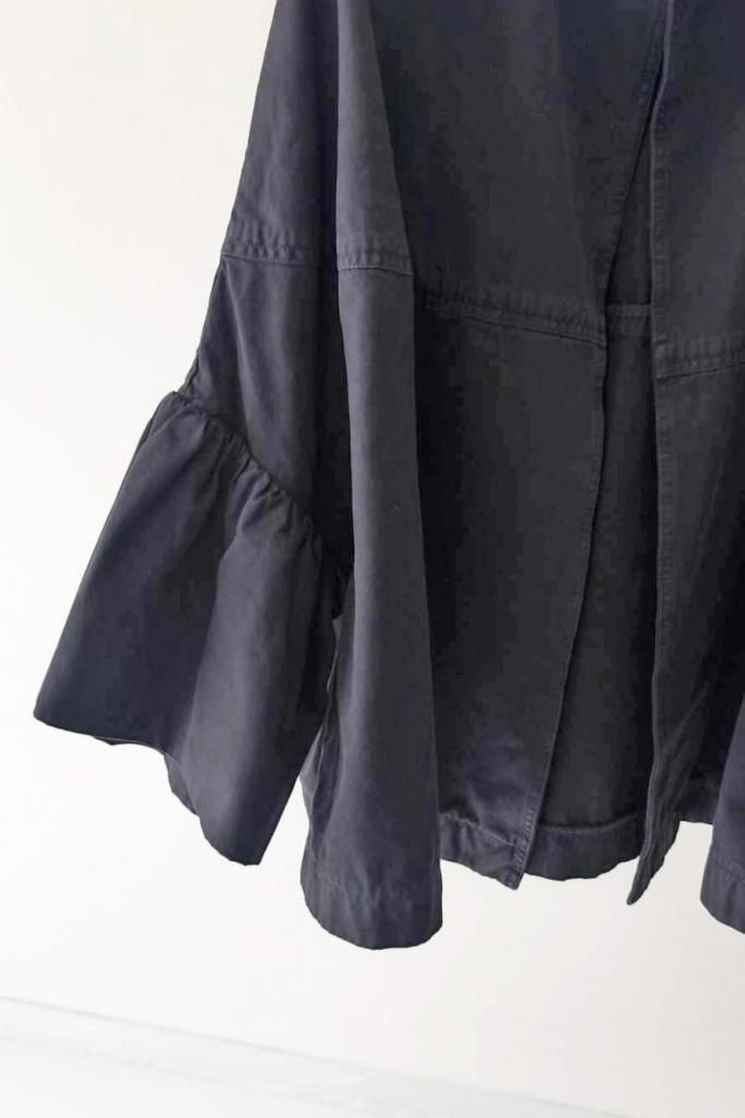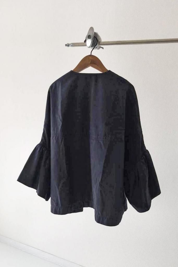 最大の特徴である袖口のフレアスリーブは、歩くたびに揺れてエレガントな雰囲気を醸し出します。