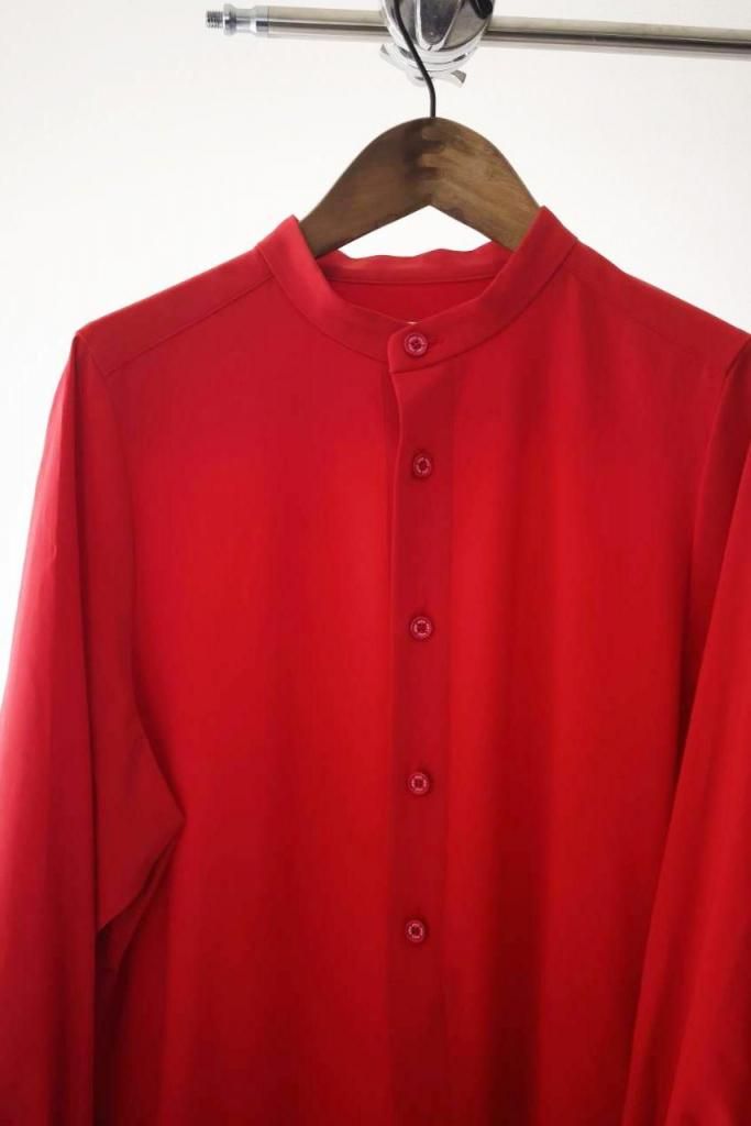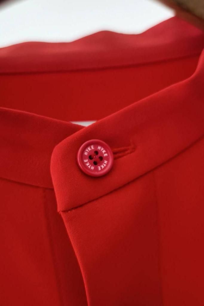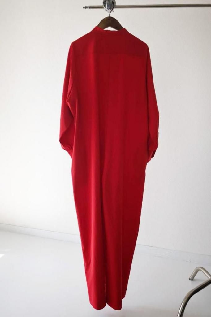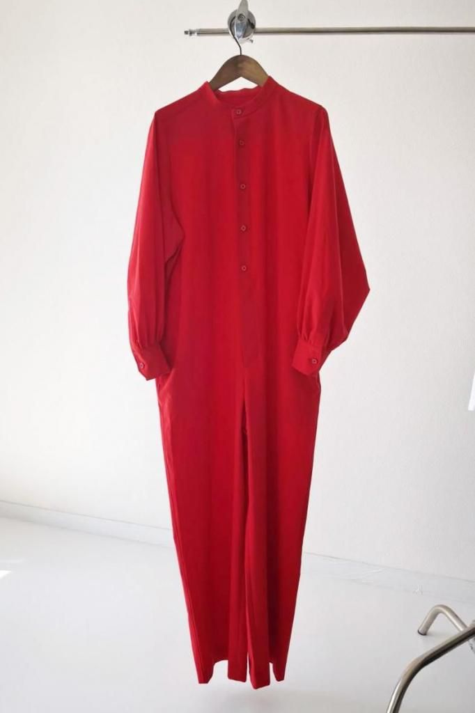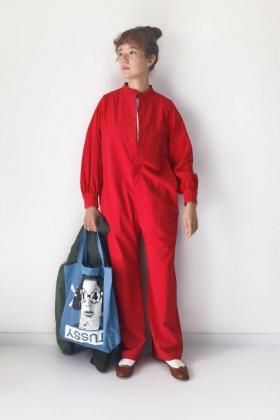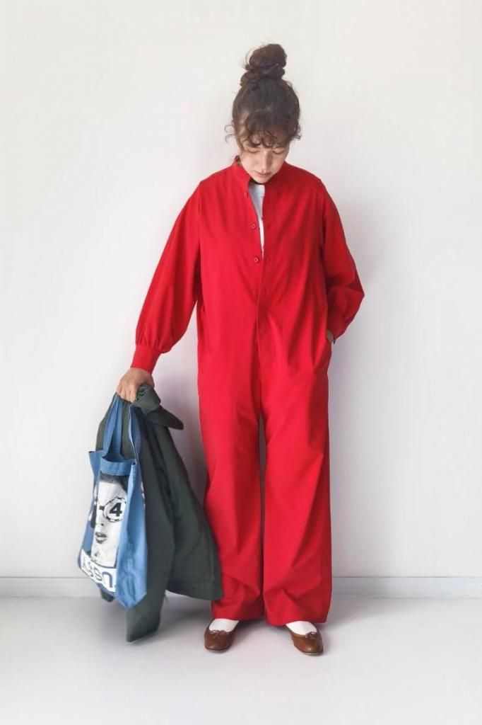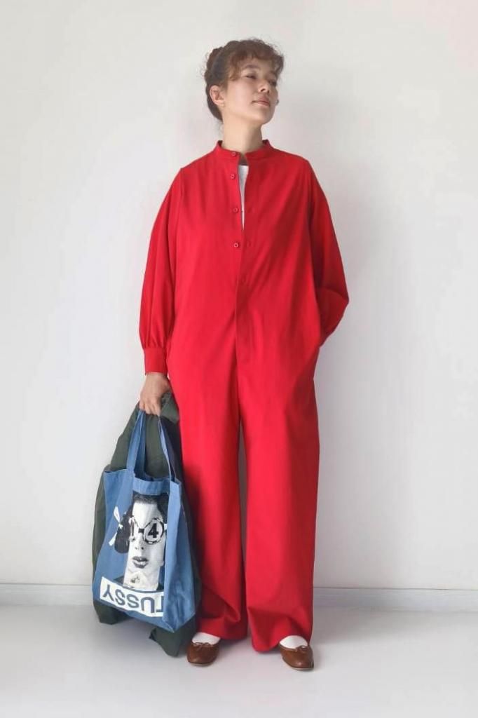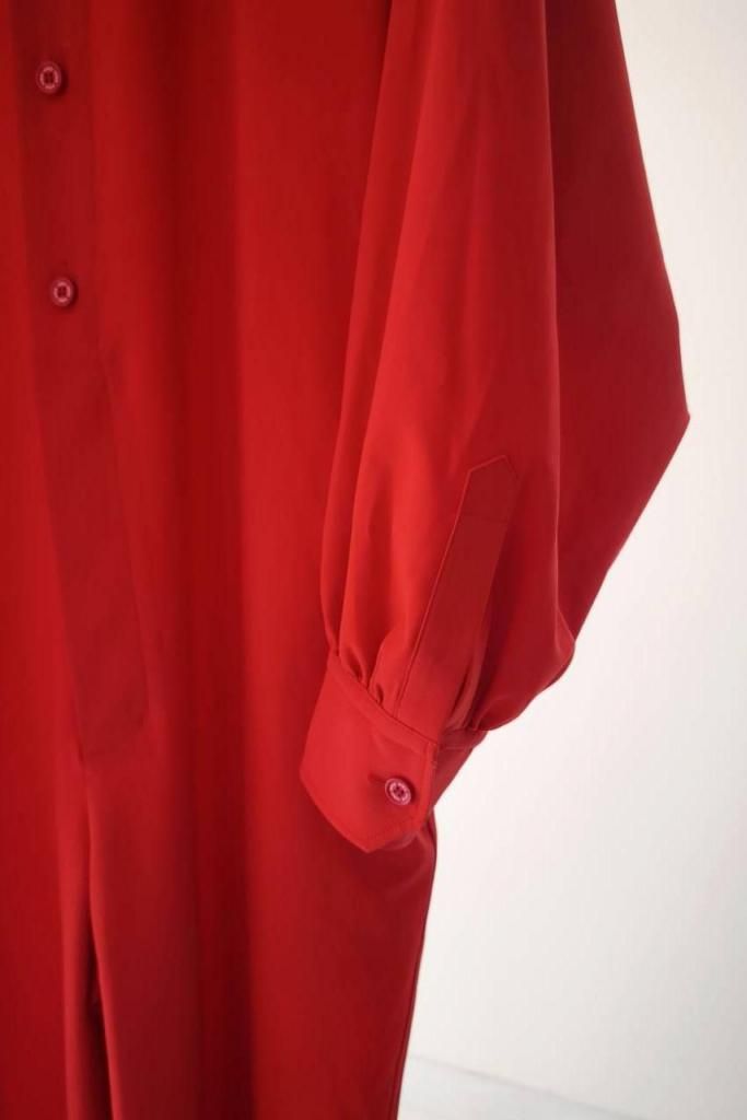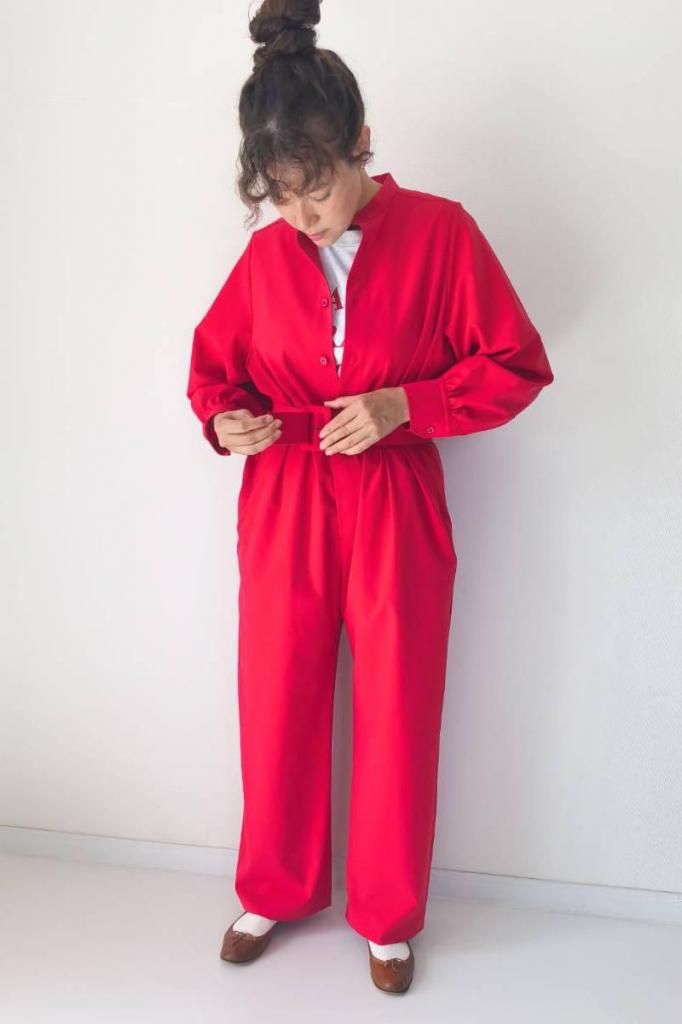 鮮やかなレッドが目を惹く、HYKEのジャンプスーツ。無駄を削ぎ落としたミニマルなデザインに、スタンドカラーとウエストベルトが付き、洗練された印象を与えます。滑らかな素材感で着心地も良く、一枚でスタイルが決まるモダンな一着です。