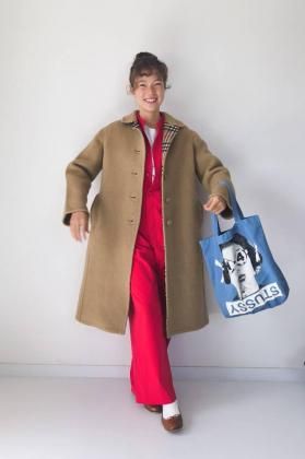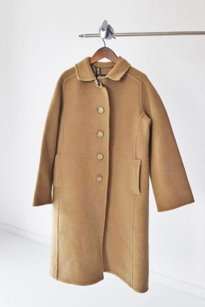 バーバーリーのウールコート。ウールのバーバリーで一枚袖、肉厚ウールのバーバリーチェック裏地。