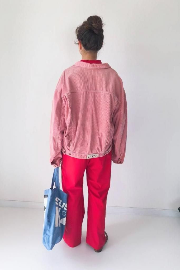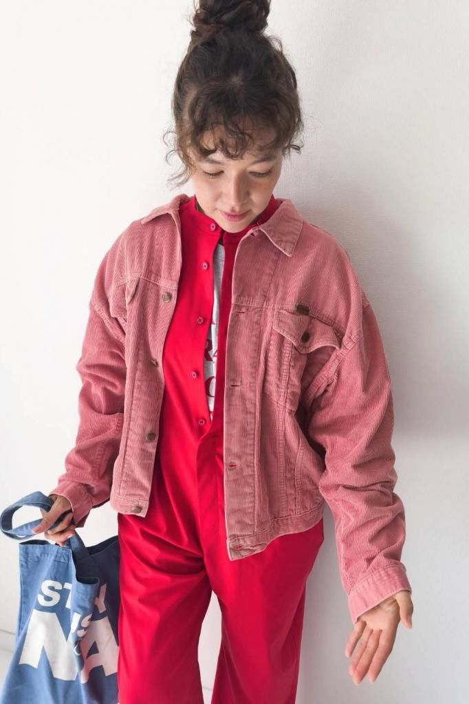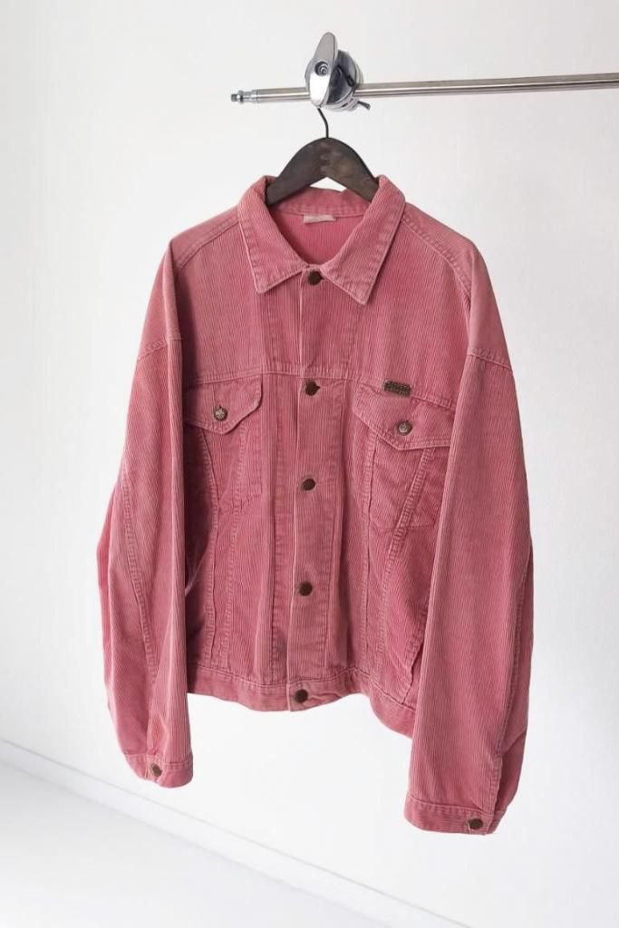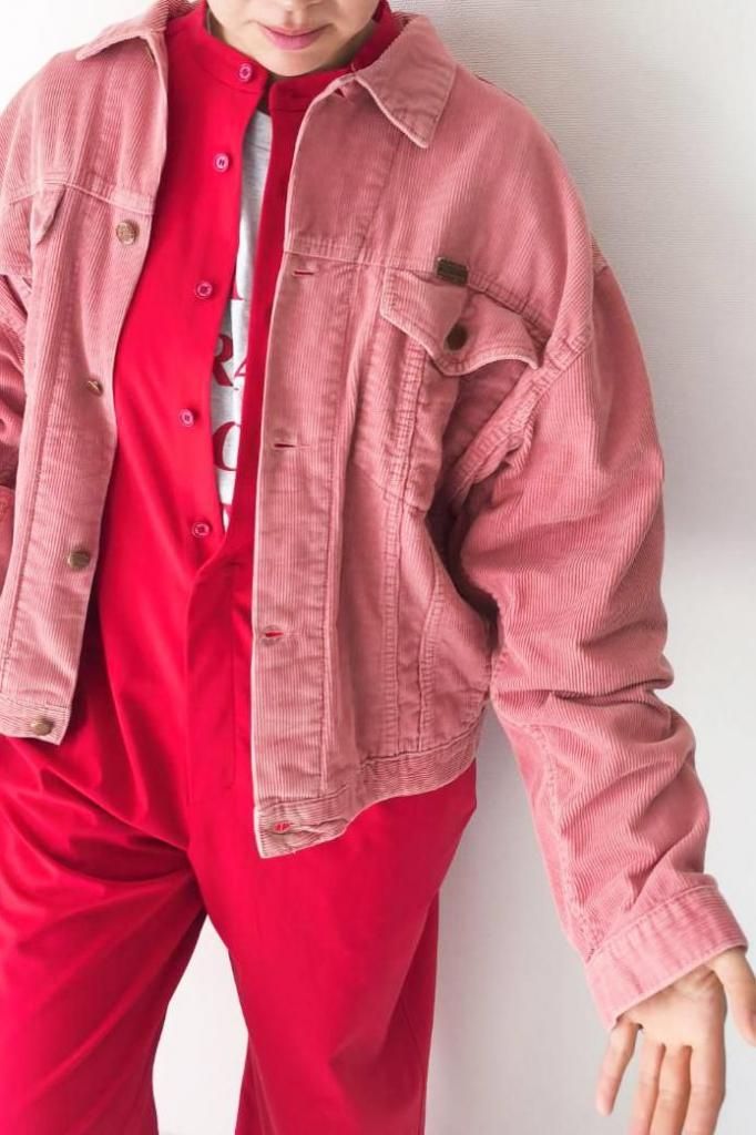 サーモンピンクの色味が可愛いコーデュロイジャケット。ユーロヴィンテージのアイテム。古着のサーモンピンクのカラーリングは別格に可愛いカラーだと思います。